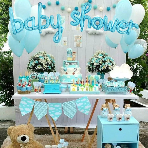 Tullumbace për baby shower me shkronja; Përmasa: 98 x 65 cm, 131 x 44.5 cm; Ngjyra; Blu, rozë