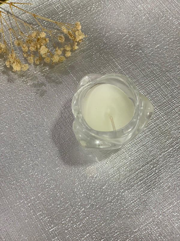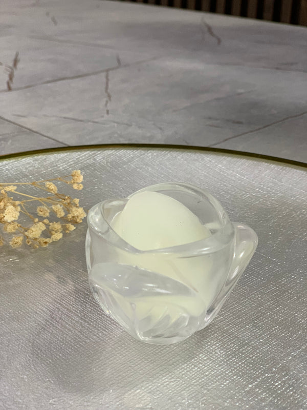 Specifikim Materiali: parafinë/qelq  Ngjyra: e bardhë Forma: trëndafil  Dimensionet: 7*H5cm