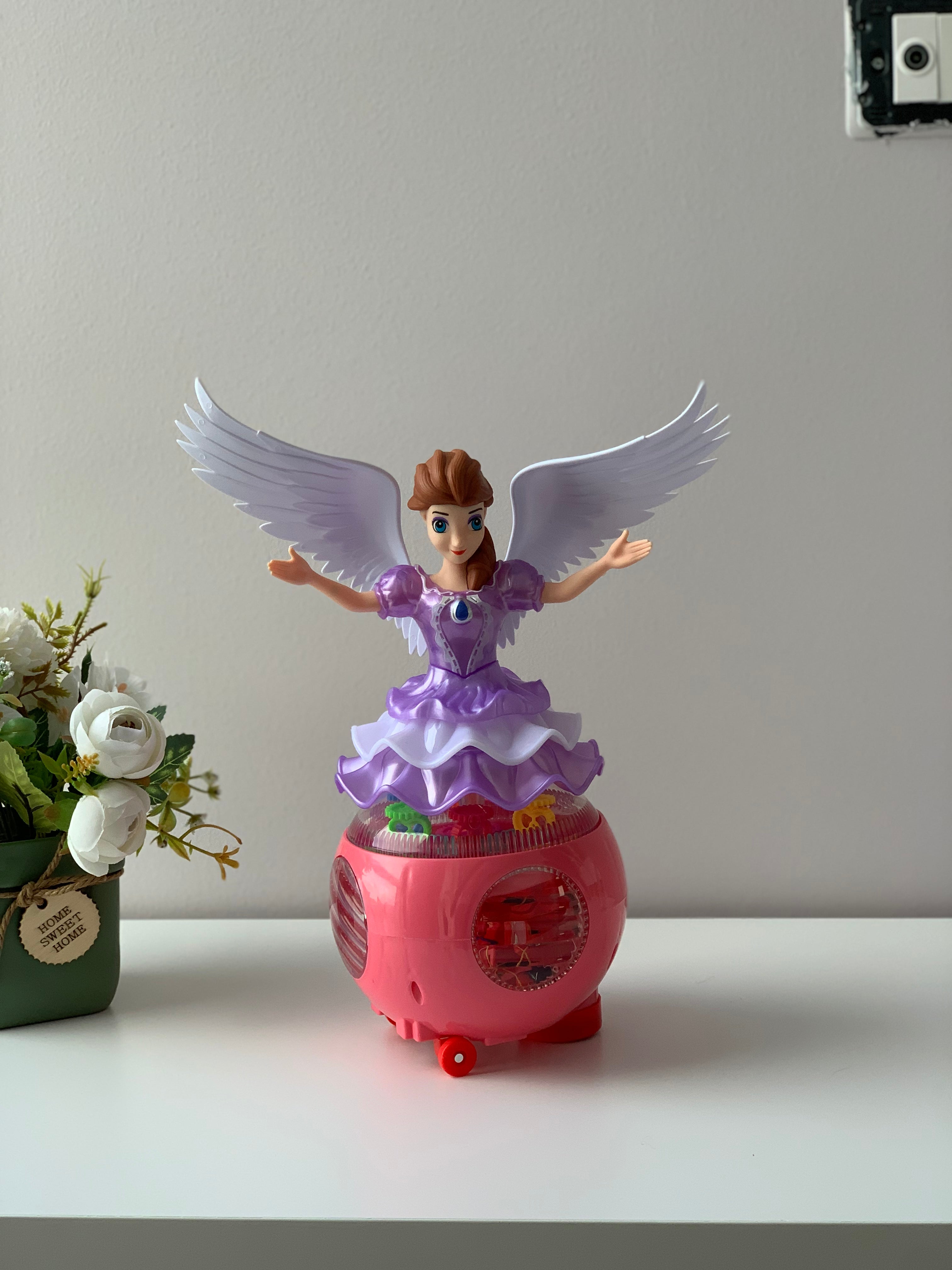 Vajza me flatra mbi topin rrotullues