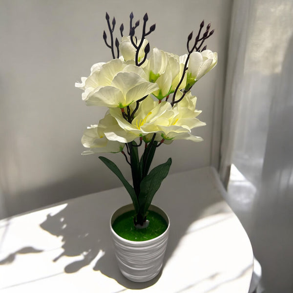 Vaze e vogel me kule artifificiale; Lule plastike; Ngjyra: E bardhë, rozë; Përmasat: 30 cm
