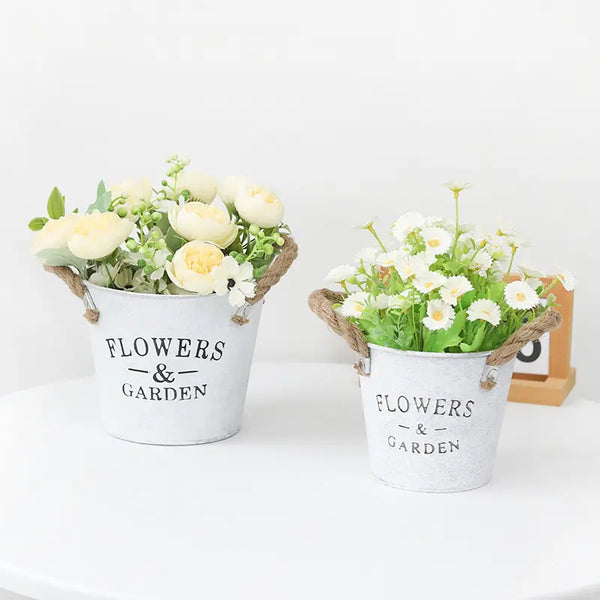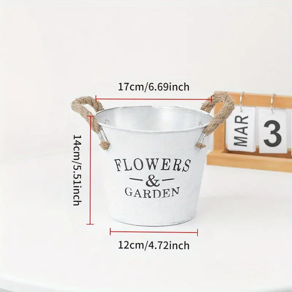 Vazo në ngjyrën gri me shkrim “Flowers and Garden”; Stil Retro; rezistente ndaj shiut; Përmasat si në foto: