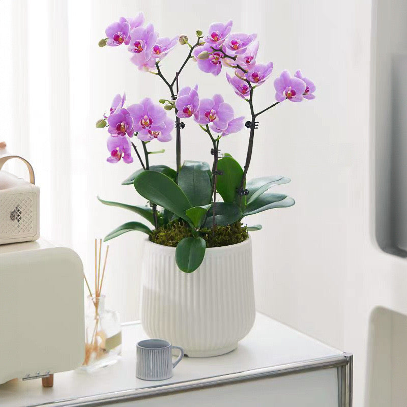Vazo lulesh plastike e bardhë mat me vija vertikale