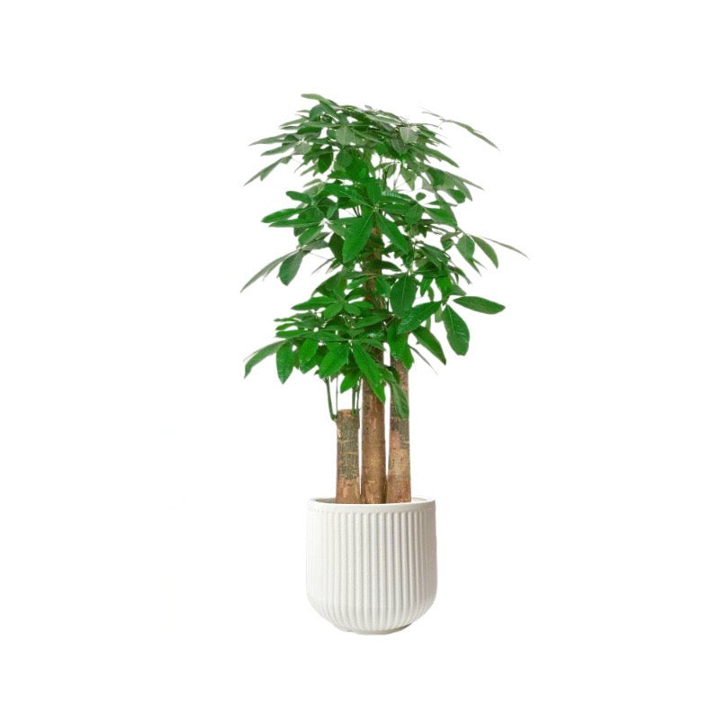 Vazo lulesh plastike e bardhë mat me vija vertikale, sipërfaqe jo e lëmuar 23 cm x 22.5 cm