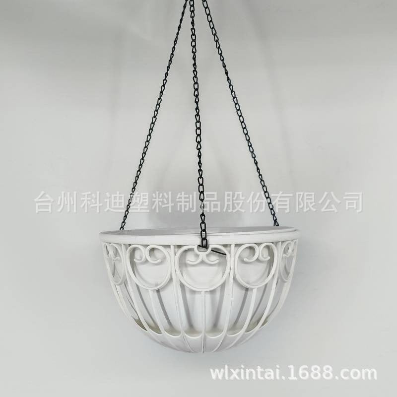 Vazo lulesh plastike gjysëmrrethore me zinxhir e bardhë