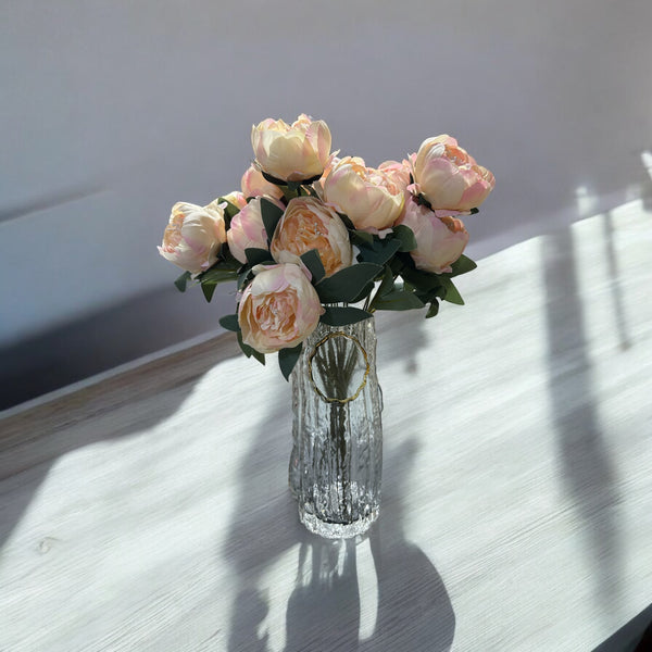 Vazo qelqi e tejdukshme me dizenjo rrethore gold; Stil modern; Gjatësi: 25 cm