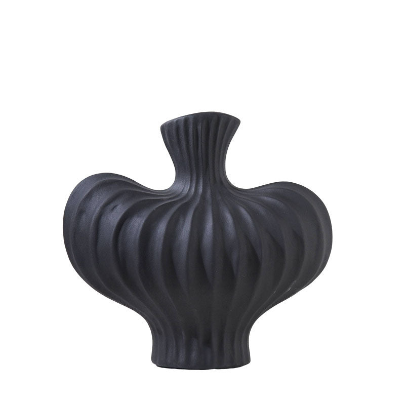 Vazo qeramike e zezë mat, me vijëzime elegante
