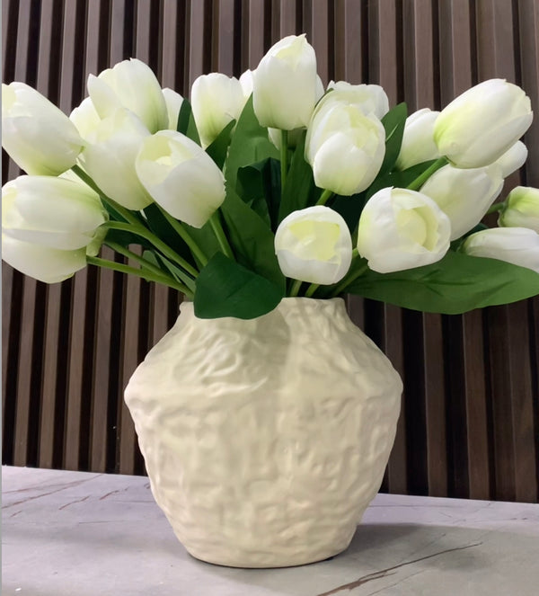 Vazo qeramike me dizenjo damarësh stil modern me përmasa 10 cm x 18 cm, ideale për dekor shtëpie