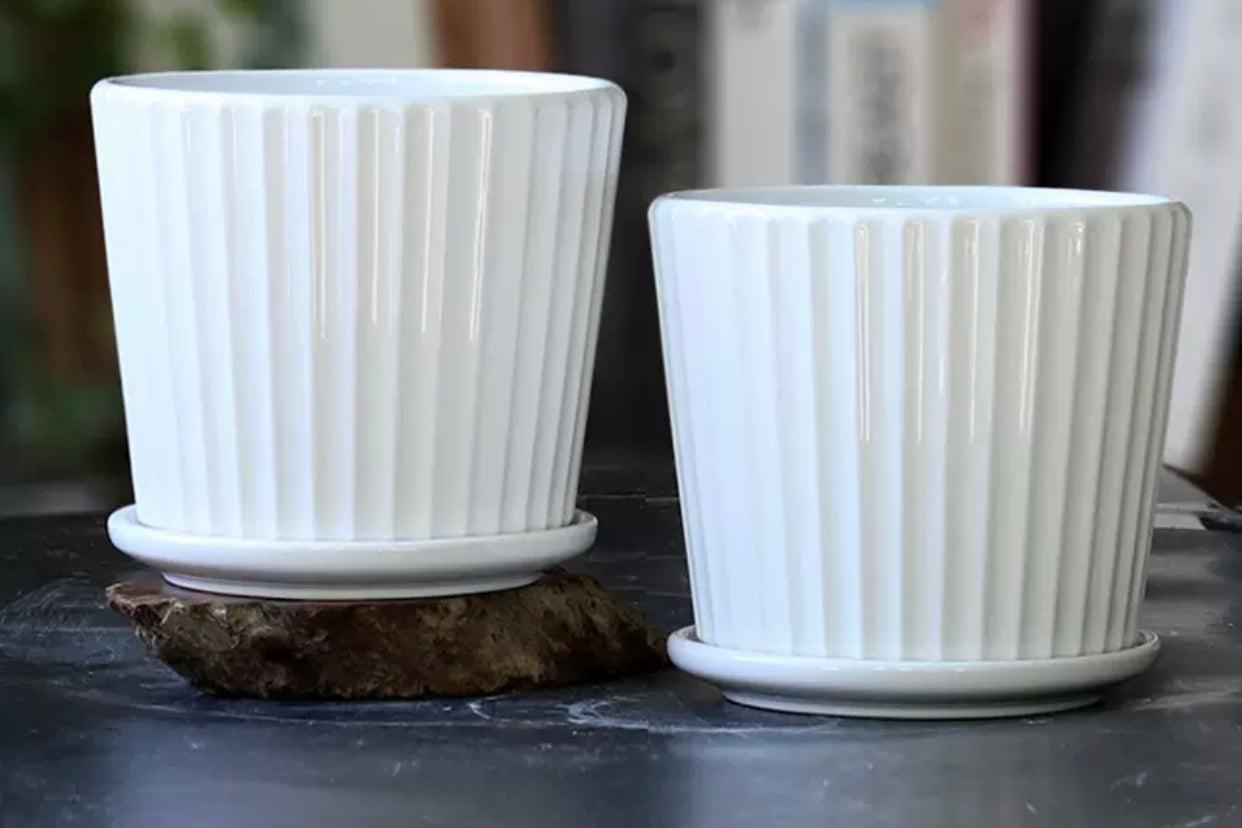 Vazo qeramike me kanale vertikale madhësia e vogël, 11 cm x 11.5 cm