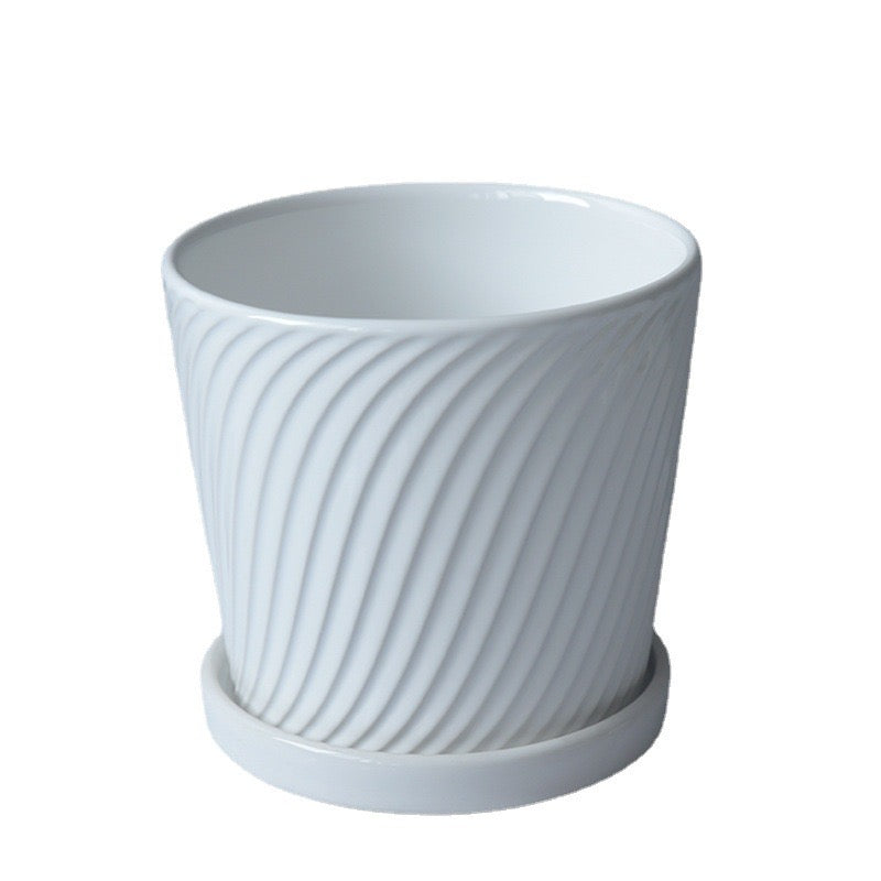 Vazo qeramike me pjatë me valëzime ngjyrë e bardhë e lëmuar me përmasa 17 x 16 cm HY1030-10-B