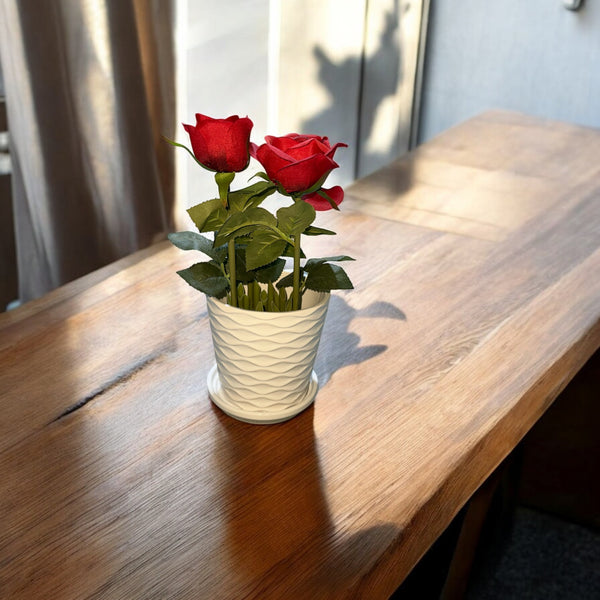 Vazo qeramike me valëzime ngjyrë e bardhë e gjatësi 10 cm