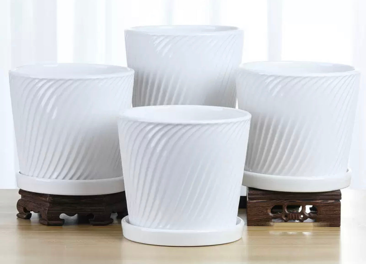 Vazo qeramike me vija të pjerrëta madhësi e mesme me përmasa 13.5 cm x 12 cm
