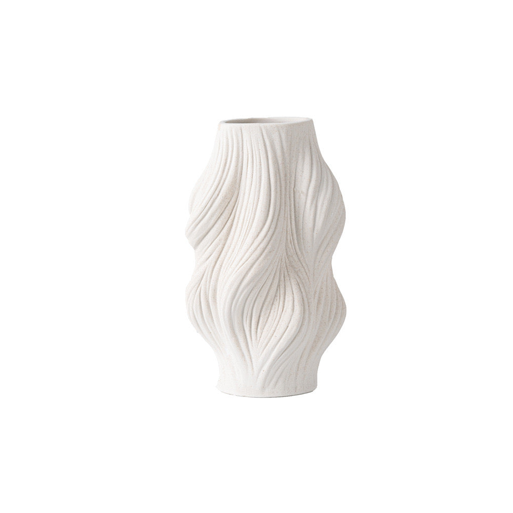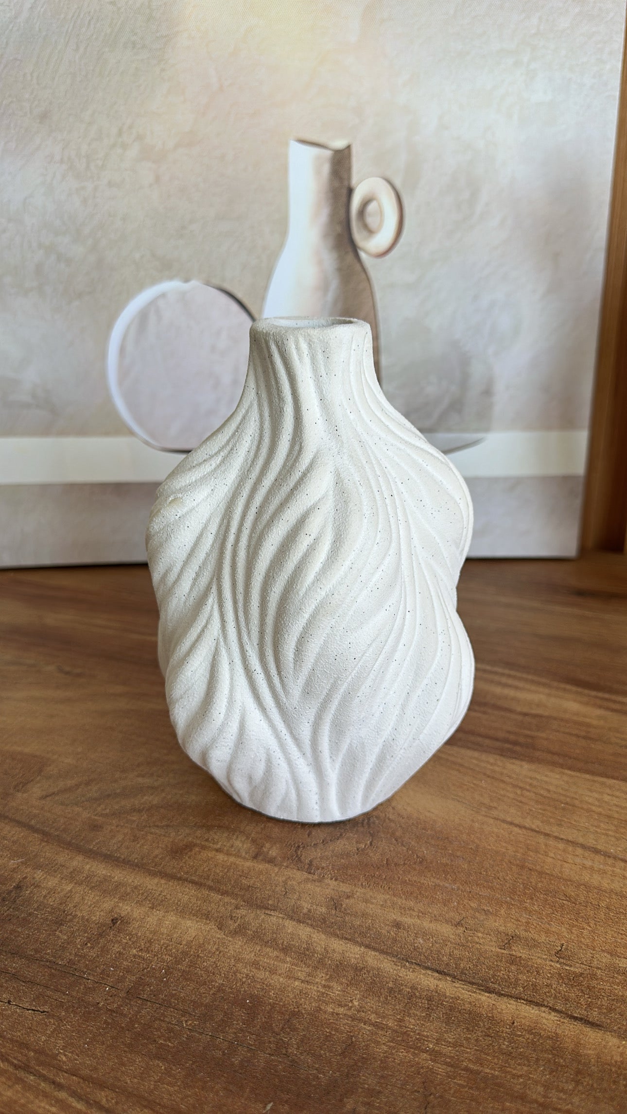 Vazo qeramike me vija vertikale të valëzuara, me strukturë me kokrriza