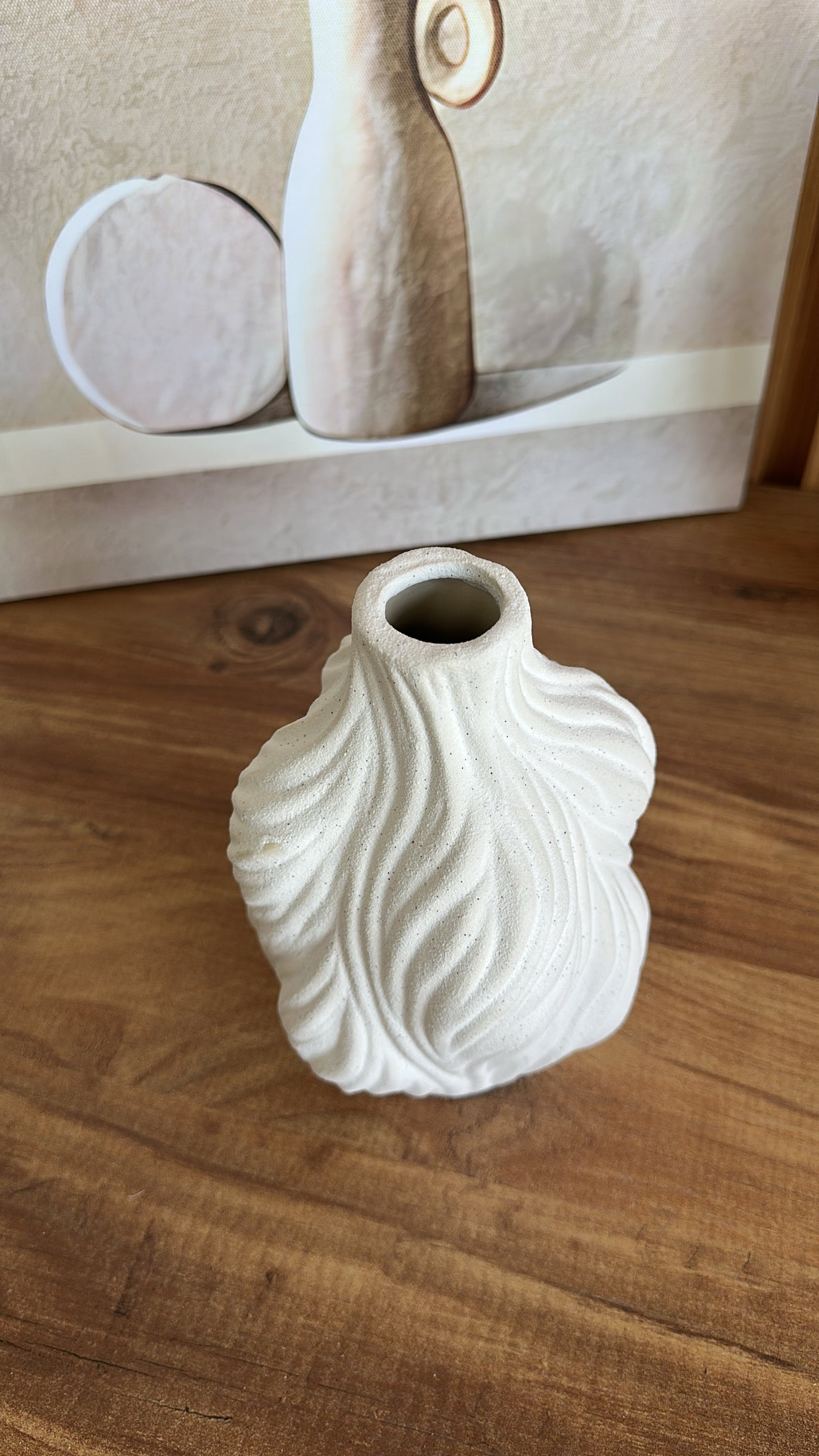 Vazo dekorative prej qeramike me dizajn modern dhe formë artistike. E punuar me kujdes për të sjellë elegancë dhe stil në çdo ambient, ideale për lule ose si dekor më...