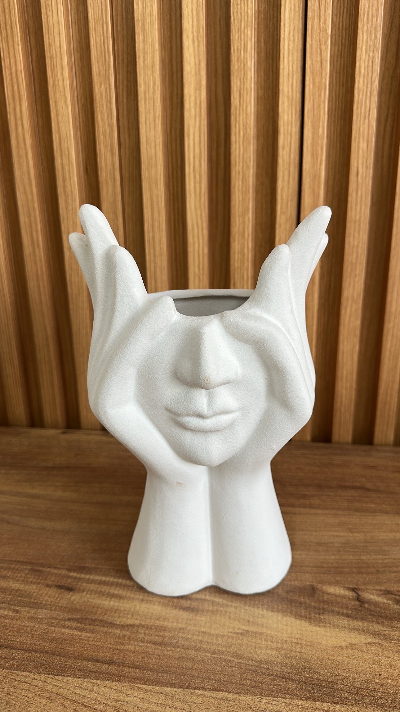 Vazo qeramike me formë dy duarsh të bashkuara, simbol i harmonisë dhe dashurisë. Dizajn unik dhe artistik që e bën një element dekorativ mbresëlënës për çdo ambient. Përmasa: 6.5 x...