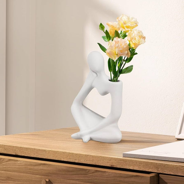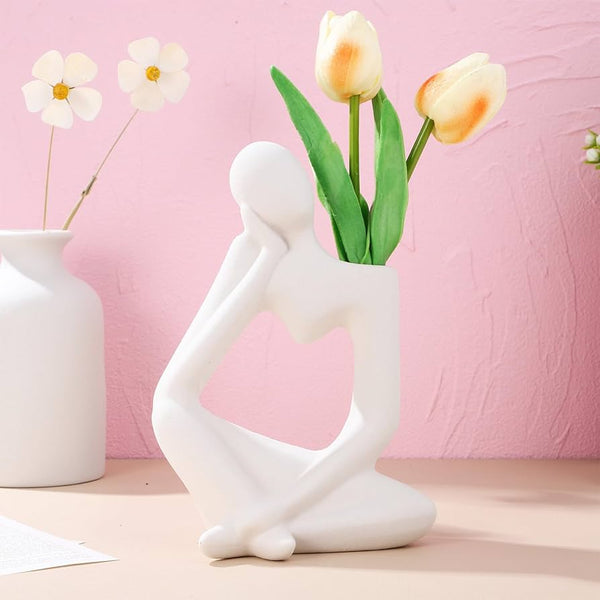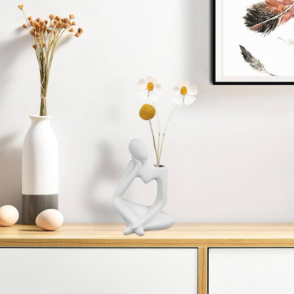 Vazo qeramike në formën e njeriut në ngjyrë të bardhë me përmasa 3 cm x 26 cm